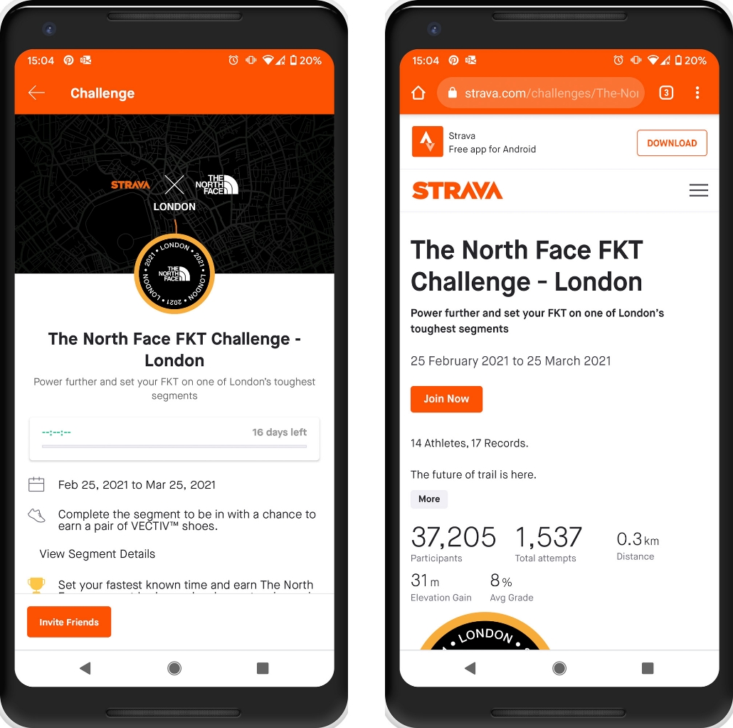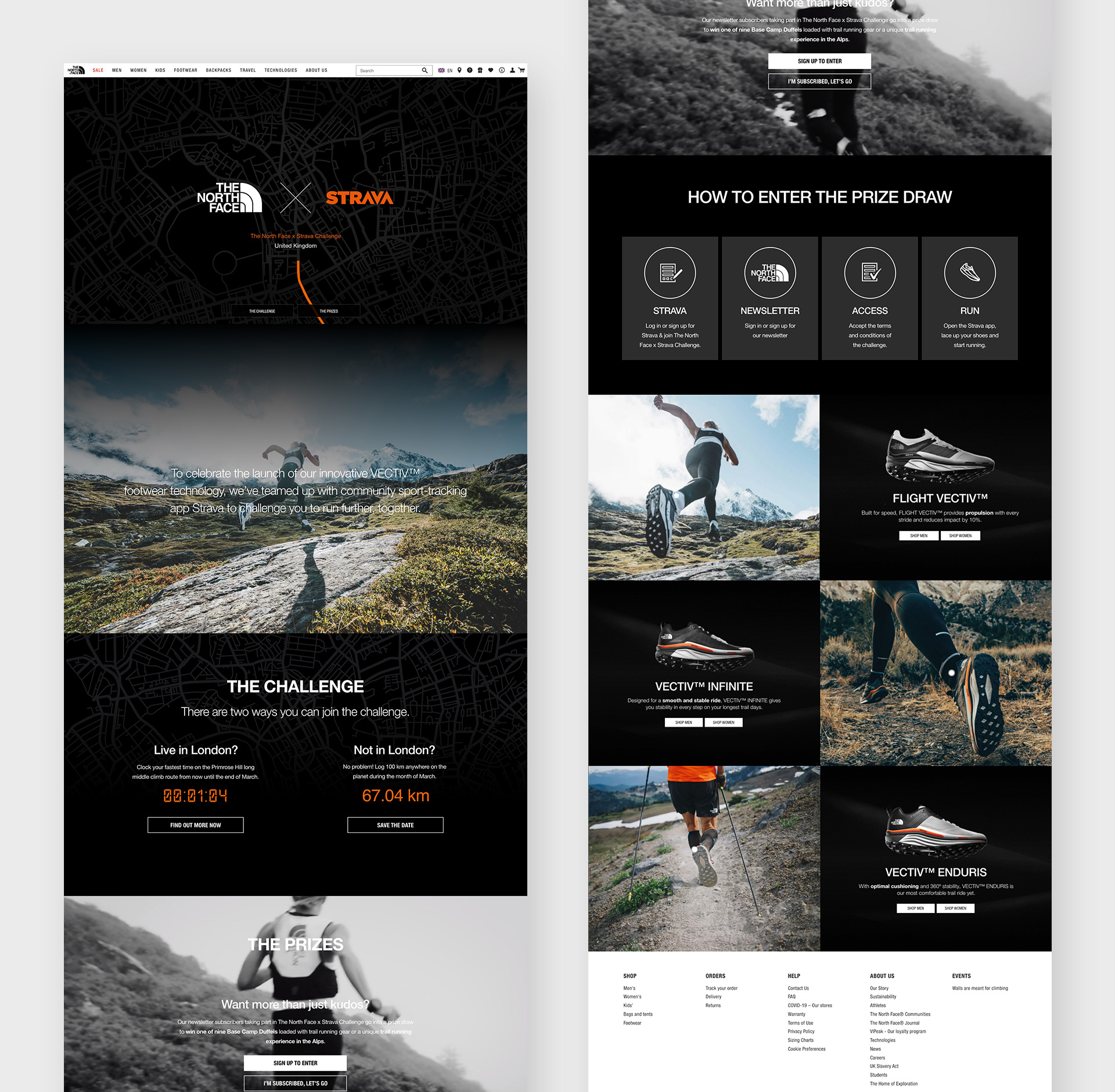 We worked alongside The North Face and Strava, to create a campaign that stretched from overall awareness and localised social media promotion, to onboarding from the The North Face website and in-app assets for Strava.