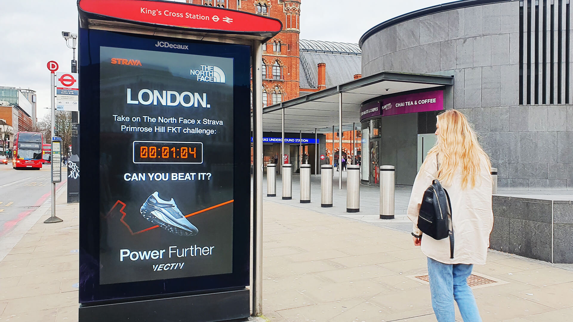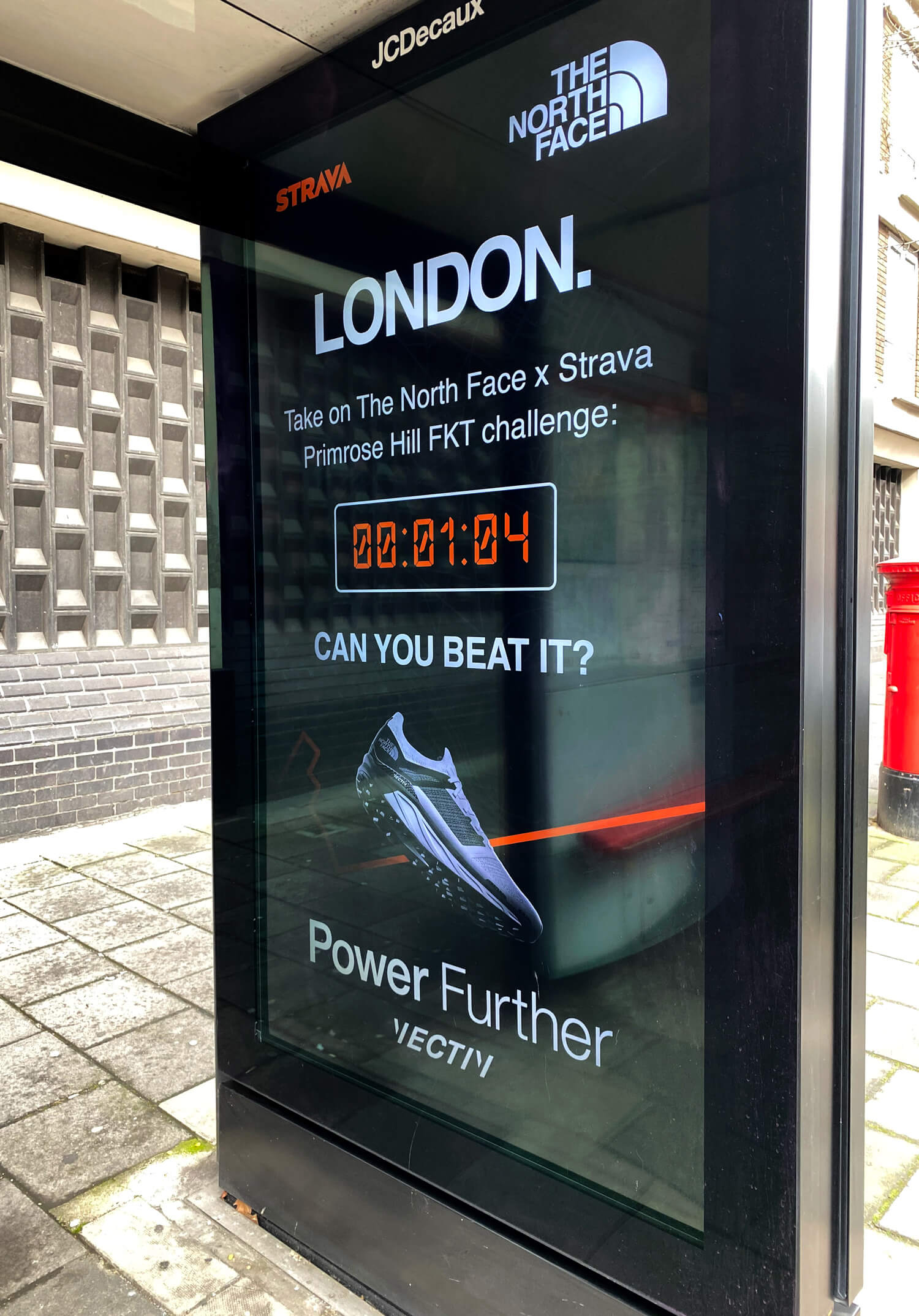 Identifying where people run, meant we could support individual FKT challenges with a localised outdoor digital campaign. We linked in-app times from Strava with digital OOH screens, updating the screens each time a new FKT was posted.